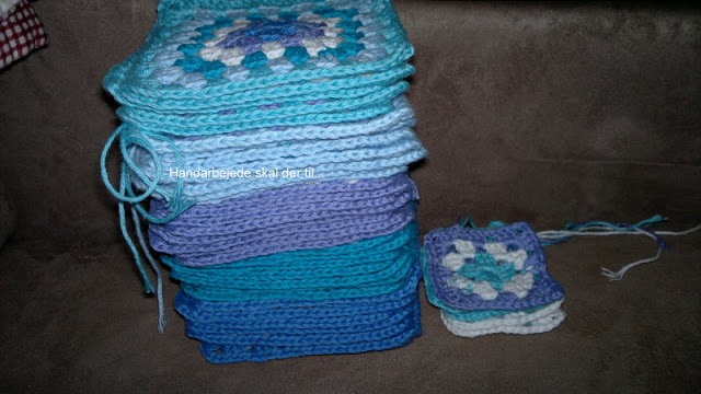 Skal se at få lavet flere af de små, så det kan blive hæklet sammen , har nemlig en plan om at der ikke skal være vildt mange lapper, men flere omgange hæklet rundt om ...